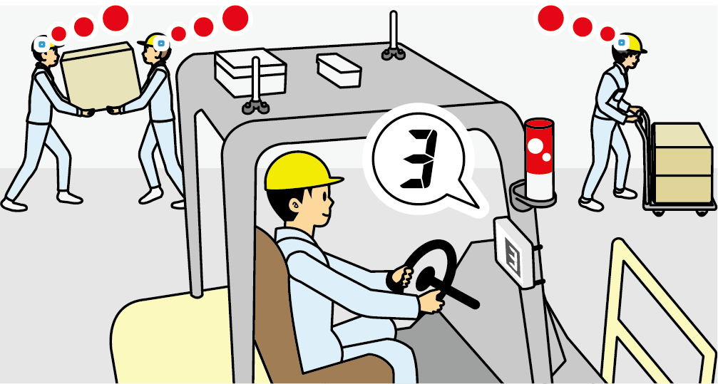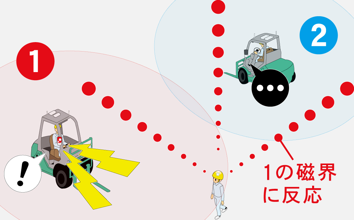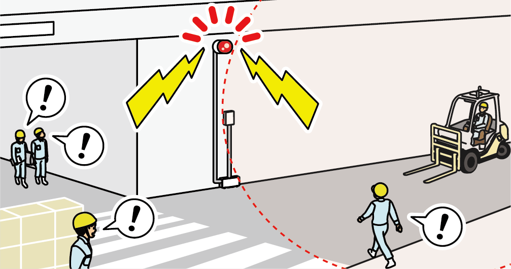 人が多く行き来する場所に設置することで、ヒヤリハンター の磁界を検知。ICタグを持たない作業者にも車両の接近を警報でお知らせします。