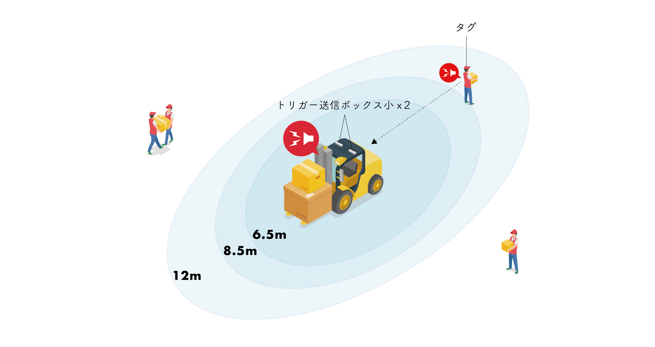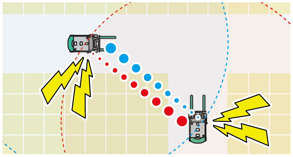 車両に設置することで、フォークリフト・重機同士の接近を通知。双方の衝突を防ぐことができます。